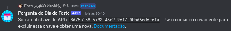 Qualquer pessoa pode obter uma chave. Basta ir até o bot e utilizar o comando/token. Guarde a chave, pois caso você a perca, será necessário obter uma nova.